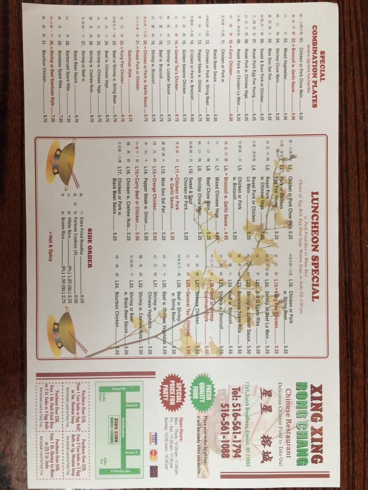 Xing Xing Rong Chang in Elmont, NY, stands out as a top-tier Chinese restaurant, impressing even the most discerning palates. Renowned for its authentic and flavorful dishes, this gem offers a wide range of options, including many vegetarian choices. The spicy pork fried rice is a standout, perfectly balanced in flavor and spice. Using high-quality ingredients, each dish is expertly prepared, ensuring a memorable dining experience. Customers rave about the quick service, affordable prices, and welcoming staff. Whether you're a fan of General Tso's chicken, chicken and broccoli, or any other classic Chinese dish, Xing Xing Rong Chang is sure to exceed your expectations. Make this your go-to spot for exceptional Chinese cuisine in Long Island.